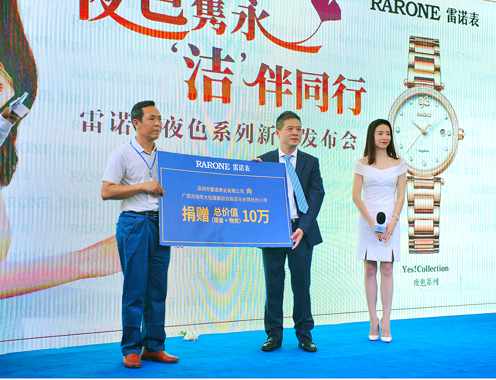 女神表示自己也非常喜歡這款新品傳達(dá)的永恒主題,表款的設(shè)計(jì)也很有意思,會是當(dāng)下都市女性青睞的腕間配飾。值得一提的是,一直熱心公益事業(yè)的雷諾表,在本次發(fā)布會上邀請董潔一同見證品牌方為廣西河池市大化瑤族自治縣百馬鄉(xiāng)同社村小學(xué)開展的愛心助學(xué)捐贈,在當(dāng)?shù)孛襟w以及明星董潔的見證下,雷諾表為貧困小學(xué)捐贈10萬愛心物資及義款,用有溫度的時間將一顆顆愛心傳遞,溫暖每一個需要幫助的孩子。