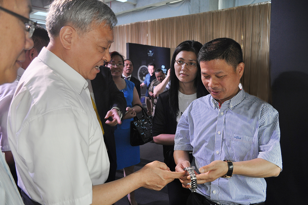活動現場,深圳市相關領導及鐘表行業協會領導、各品牌高層一同為文博會鐘表分會場揭幕,并參觀鐘表展覽區。雷諾表作為商務手表品牌,攜騎士商務系列、博鰲··鼎智系列、夜色系列在6號展位亮相。政委領導參觀雷諾展區時,對雷諾表春秋系列贊譽有加,并鼓勵雷諾表挖掘更多中國傳統文化精髓,將鐘表技術與中國傳統文化相結合,引領鐘表新潮流。