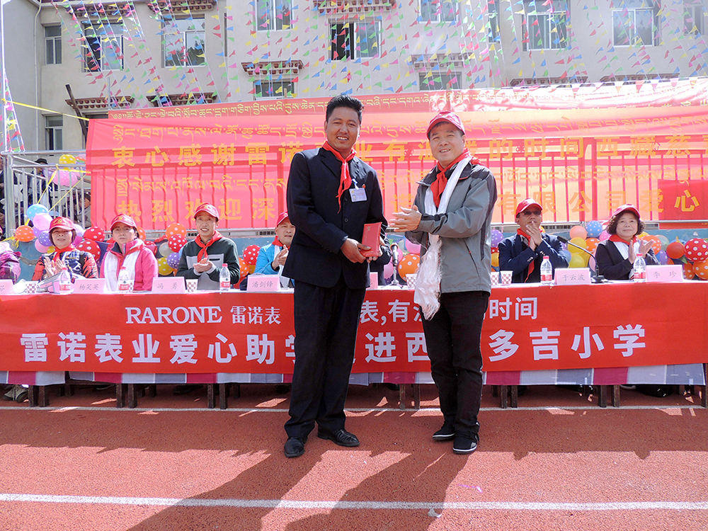 雷諾表業總經理詹江洲先生表示,雷諾表業今天所盡的綿薄之力比起工作在這里的援藏干部,在這里教書育人的老師們是微不足道的,堅守在邊疆無私奉獻的人更讓人感動和敬佩!今天我們的付出也僅僅是杯水車薪微不足道,我們只是希望通過這樣的助學活動,能夠在社會上倡導這樣的愛心風尚。通過這樣的助學活動,努力承擔對社會的責任,并始終把這種責任看作是企業發展的強大動力。我們時刻懷著一顆感恩之心,積極回報社會,我們深知只有企業不斷地發展,才能為社會做出更大的貢獻。
